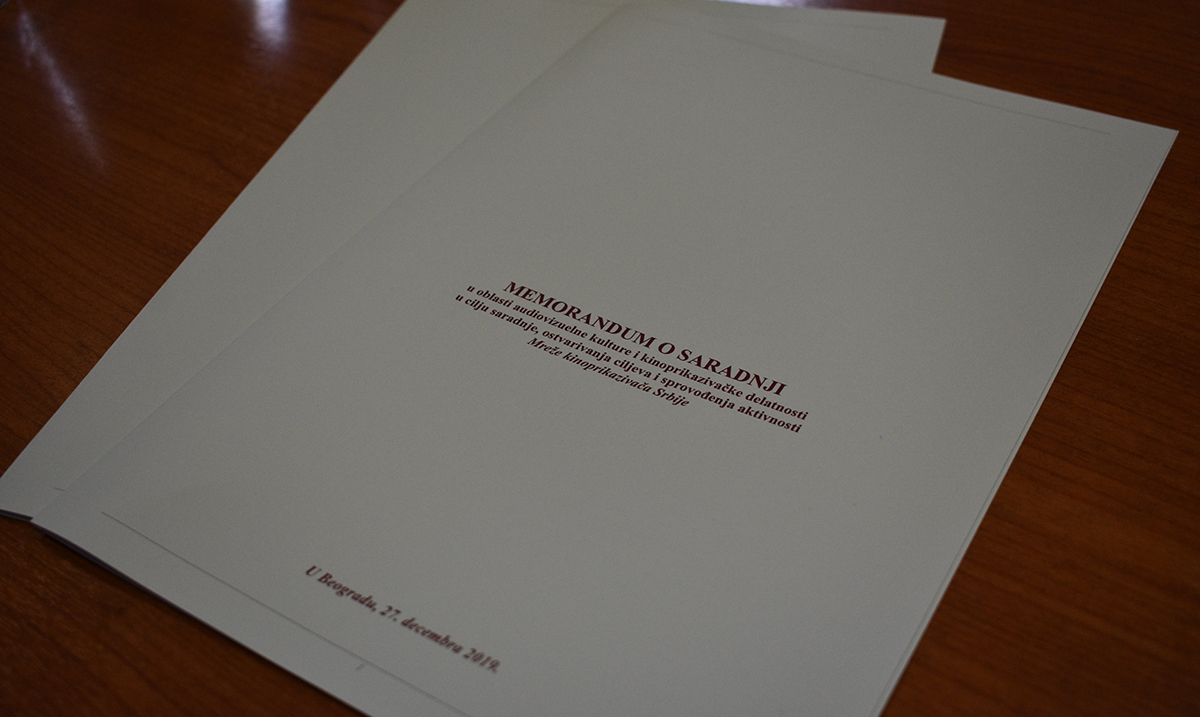 U prostorijama Filmskog centra Srbije, u petak 27. decembra potpisan je Memorandum o saradnji u oblasti audiovizuelne kulture i kinoprikazivačke delatnosti u cilju saradnje, ostvarivanja ciljeva i sprovođenja aktivnosti Mreže kinoprikazivača Srbije. Ovaj sporazum među glavnim ciljevima ističe umrežavanje kinoprikazivača i zastupanje njihovih zajedničkih interesa, razmenu ideja i iskustava, unapređenje kinoprikazivačke delatnosti, zajednički rad na povećanju broja gledalaca i kreiranje zajedničkih programa. „Potpisivanjem ovog sporazuma otvorila su se vrata i jedan nepregledni prostor za povezivanje i bližu saradnju svih ljudi i institucija u okviru mreže“, konstatovao je Boban Stefanović, urednik filmskog programa Kulturnog centra Gornji Milanovac.