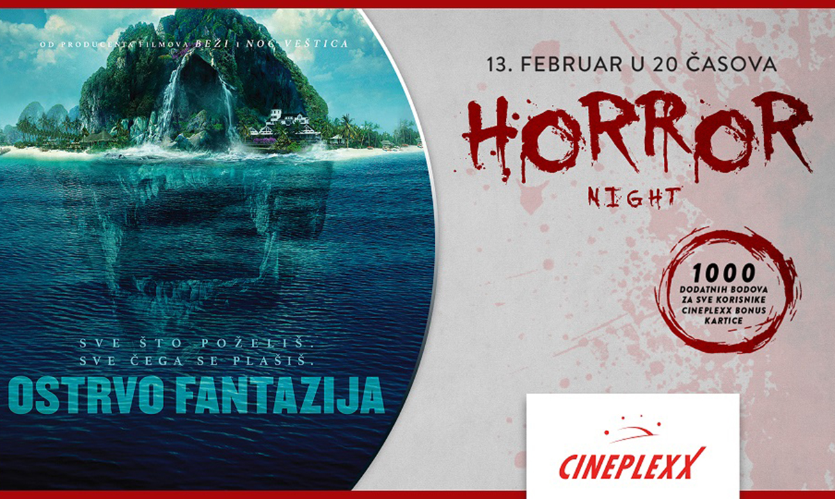 Zabačeno tropsko ostrvo liči na fenomenalnu ideju za odmor, međutim, jedan četvrtak, konkretno 13. februar doneće nam Horror night događaj u Cineplexx bioskope, uz ideju o idealnom, relaksirajućem odmoru. Svi članovi Cineplexx bonus kluba uz kupljenu ulaznicu za Horror night i film ,,Ostrvo fantazija“ ostvariće dodatnih 1000 bonus bodova na svojoj Cineplexx kartici.