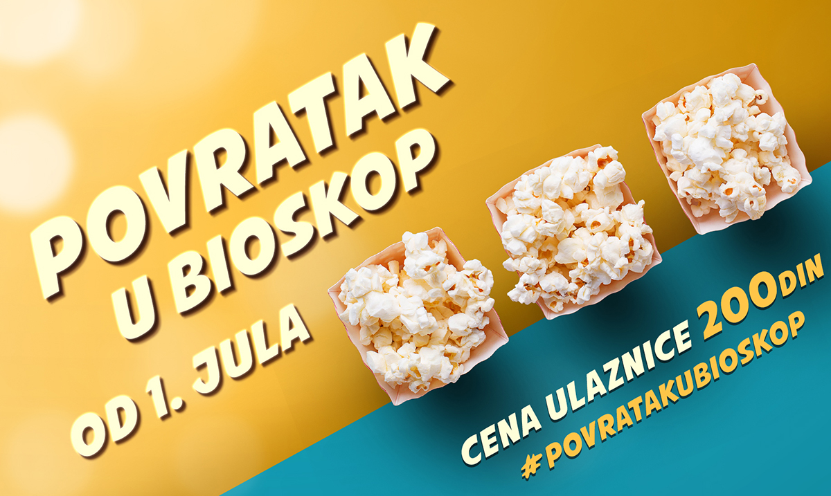 Podržavajući jedinstvenu misao, da nam je socijalizacija danas potrebnija  više nego ikad, publika će od 1. do 15. jula svoje omiljene filmove, u odabranom društvu,  moći konačno da gleda iz bioskopske fotelje i na velikom platnu. U duhu solidarnosti sa planetarnom pandemijom, cena karata za filmove će tokom trajanja akcije u svim bioskopima biti po simboličnoj ceni od 200 dinara. Cena će važiti za sve filmske projekcije.