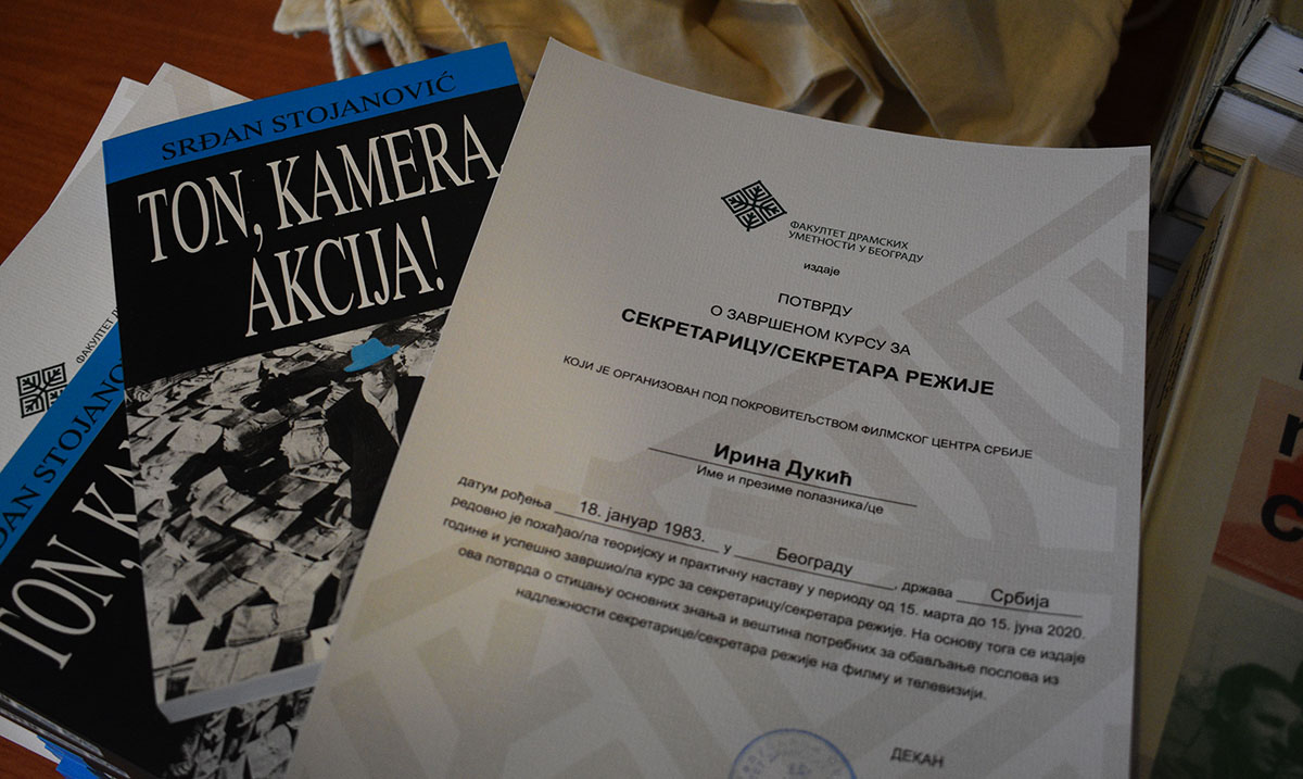 U prostorijama Filmskog centra Srbije, u četvrtak 25. juna, svečano su dodeljene diplome polaznicima radionice za sekretare režije, jednu od ključnih pozicija u filmskoj i televizijskoj produkciji. Ovo je bila prva u nizu od šest radionica koje organizuje Filmski centar Srbije u saradnji sa Fakultetom dramskih umetnosti u Beogradu, sa ciljem da polaznicima pruže mogućnost da steknu znanja i započnu filmsku i TV karijeru.