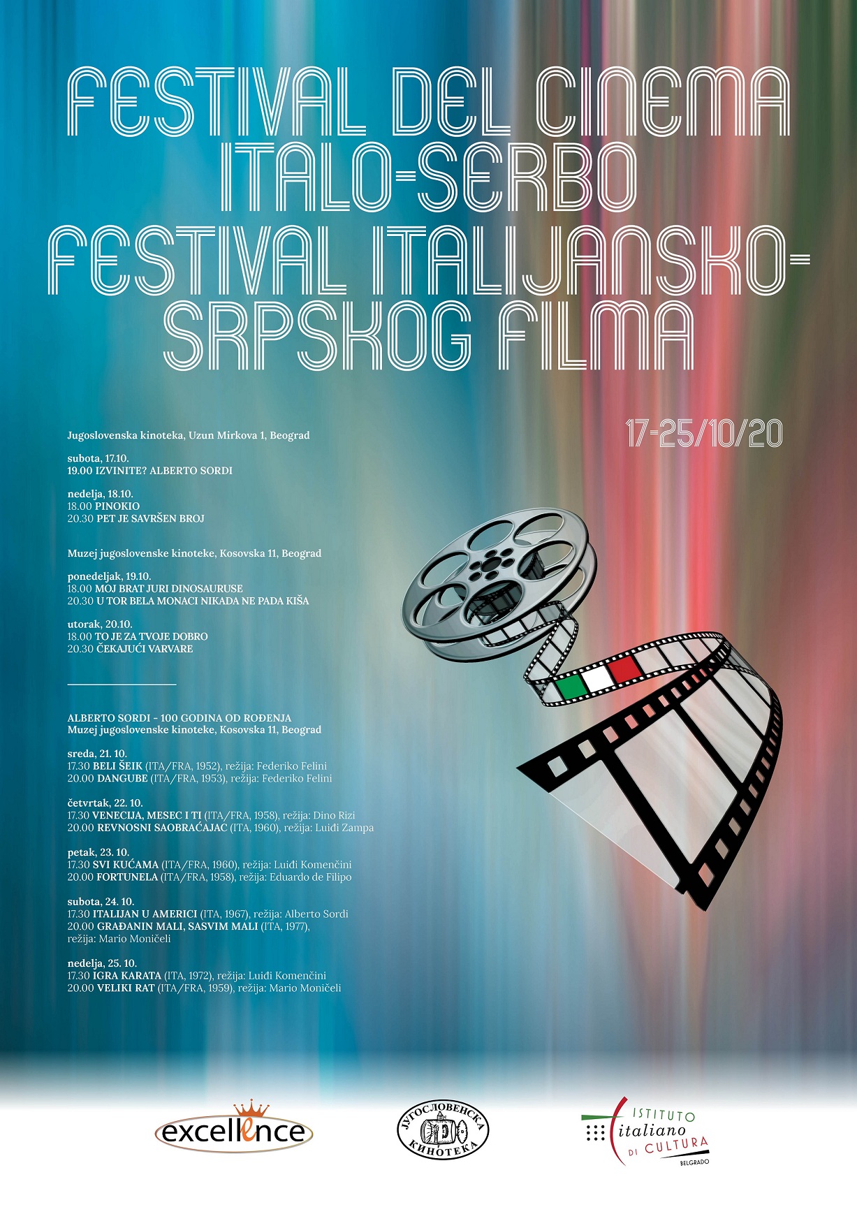 Kulturna asocijacija Excellence International, u saradnji sa  Italijanskim institutom za kulturu u Beogradu, Jugoslovenskom kinotekom, Ministarstvom kulturnih dobara, kulturnih aktivnosti i turizma Italije (MIBACT), Institutom Luče/Činečita i Eksperimentalnim filmskim centrom, predstavlja peto izdanje Festivala italijansko-srpskog filma, koji će u prisustvu publike biti održan od 17. do 25. oktobra, u oba sedišta Jugoslovenske kinoteke u Beogradu, uz poštovanje svih propisanih mera zdravstvene zaštite.