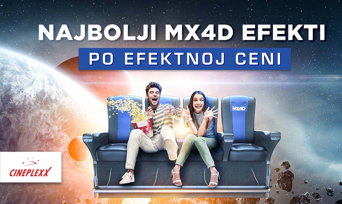 Poseban doživljaj filma koji pruža MX4D tehnologija, postaje još posebniji od danas, 05. novembra u Cineplexx 4D Delta City bioskopu, jer će se na repertoaru naći pet najgledanijih 4D naslova i to po sniženoj ceni ulaznice*.