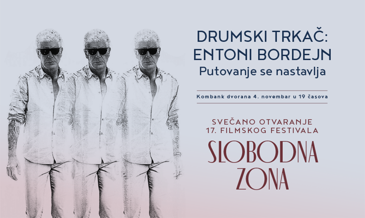 Filmski festival Slobodna zona biće održan od 4. do 9. novembra u Beogradu, Novom Sadu i Nišu. Festival će 4. novembra svečano otvoriti bioskopska premijera filma Drumski trkač: Entoni Bordejn u Kombank dvorani u 19 časova.