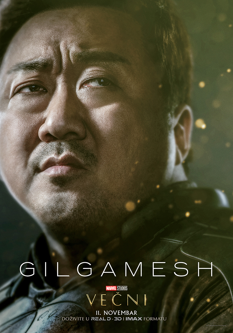 Gilgameš je najsnažniji iz ekipe Večnih. Koristi kosmičku energiju kako bi uvećao svoju snagu. Kada nije u žaru borbe Gilgameš je opušten i srdačan, takođe je svojevrsni zaštitnik Tene (Anđelina Džoli). Južnokorejsko-američki glumac Don Li (Ma Dong-Seok), baziran u Seulu, poznat je po svojim akcionim ulogama. O Gilgamešu je s ushićenjem govorio: „Igram Gilgameša koji je najsnažniji i najjači junak. Njegova specijalnost je jak udarac, ali je takođe mekog srca. Nadam se da će ga ljudi voleti„.