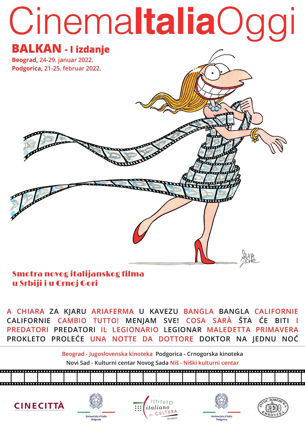Prvo izdanje smotre nove italijanske filmske produkcije, pod nazivom CinemaItaliaOggi Balkan, počinje 24. januara u Jugoslovenskoj kinoteci u Beogradu i traje do 29. januara 2022. Deset najuspešnijih i najcenjenijih italijanskih filmova u poslednje tri godine biće predstavljeno u zgradi Jugoslovenske kinoteke u Uzun Mirkovoj 1. Tokom februara meseca izbor ostvarenja biće prikazan širom Srbije i regiona: u Crnogorskoj kinoteci u Podgorici, Kulturnom centru Novog Sada i u Niškom kulturnom centru.