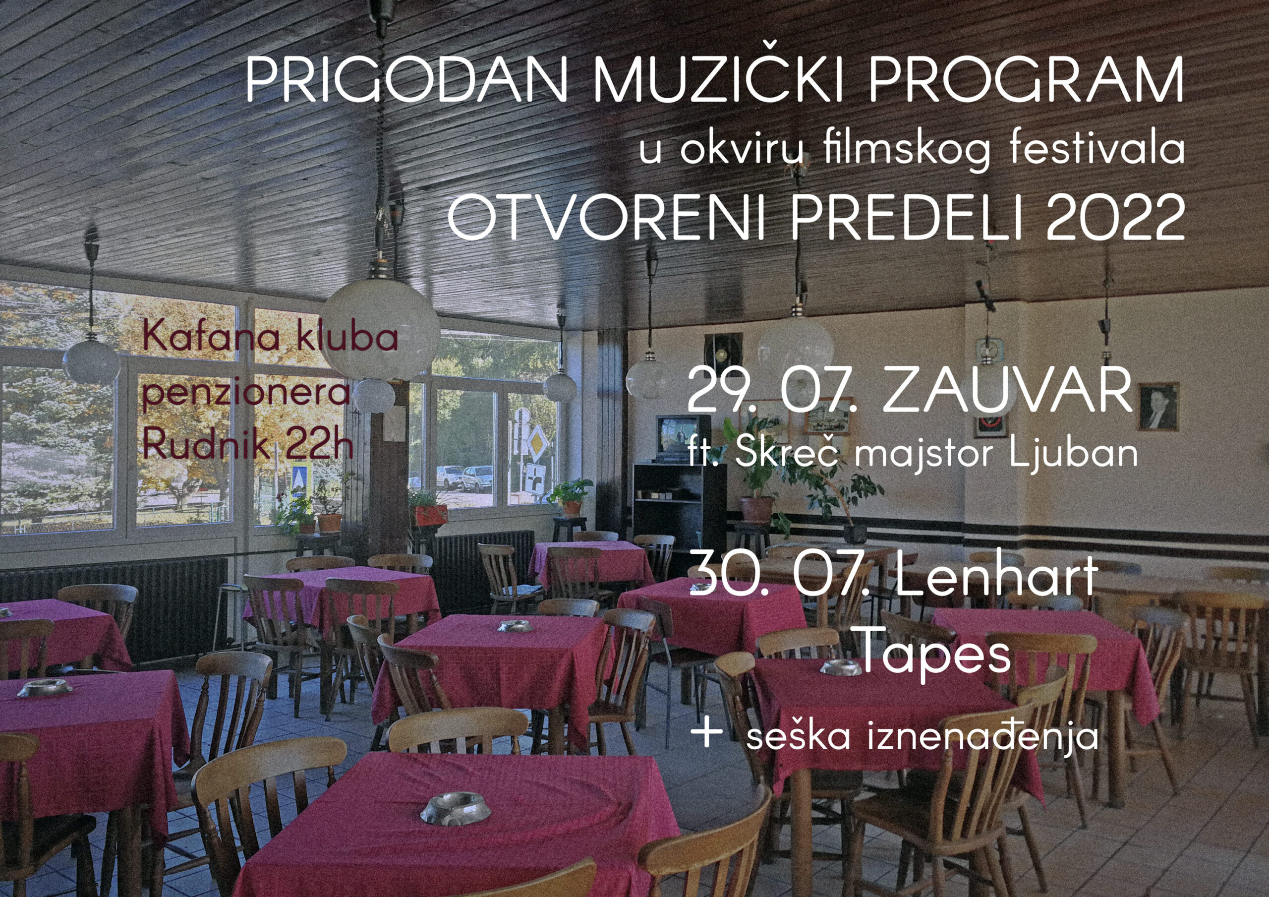 U okviru pratećeg programa prvog izdanja međunarodnog filmskog festivala “Otvoreni predeli – Festival inovativnog filma Rudnik” (“Open Spaces – Rudnik Festival of Innovative Cinema”) koji se održava od od 29. do 31. jula 2022. godine na Rudniku, organizatori su najavili i Prigodan muzički program prve dve večeri nakon projekcija.
