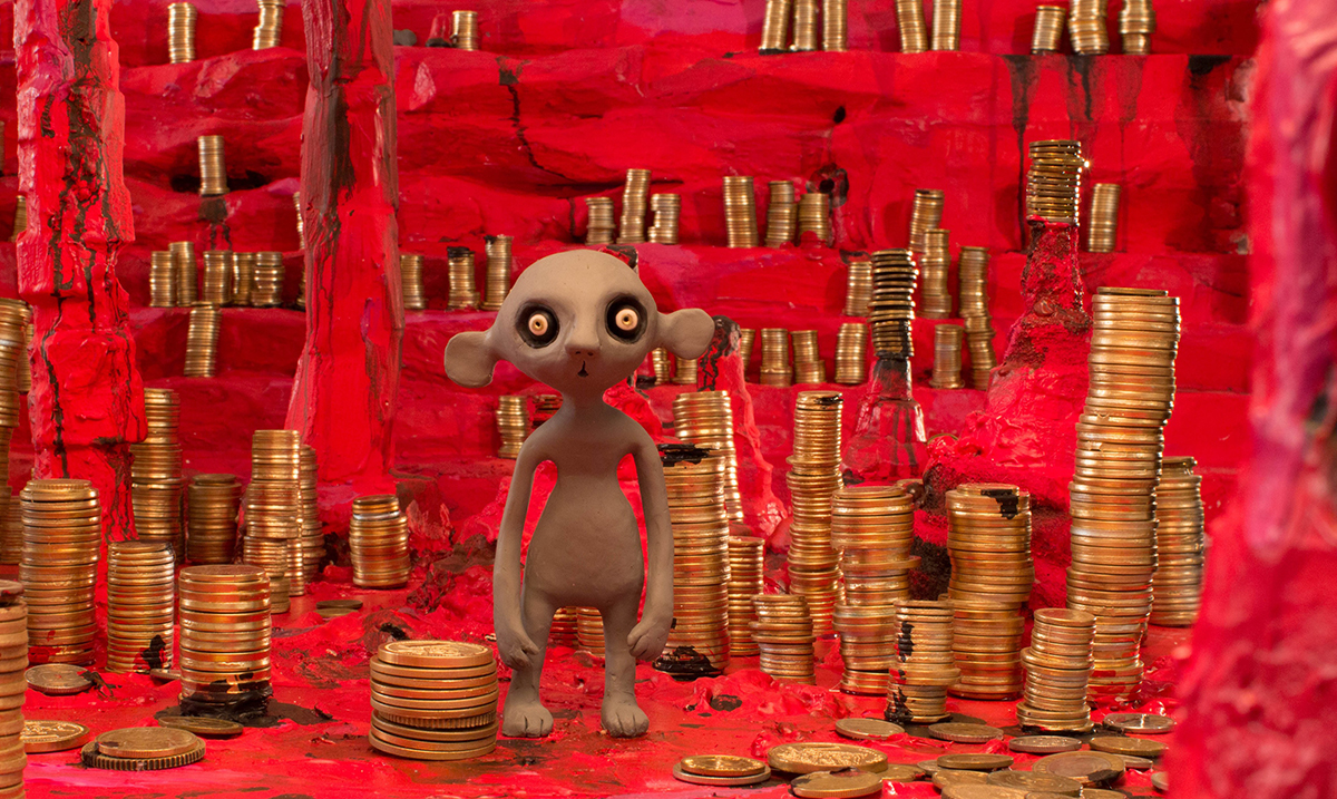 Film „O novcu i sreći“ bavi se aktuelnom temom ekonomije, kroz distopijski svet Hrčaka koji žive i vredno rade u Hrčkolendu, savršenoj državi sa savršenom ekonomijom u kojoj BDP konstantno raste, ne postoji nezaposlenost, a sto odsto stanovništva izjašnjava se da je srećno. Naravno, kao i svaki pokušaj nasilnog uređenja savršenog društva, svet Hrčaka ima i svoju mračnu stranu, koju postepeno otkrivamo tokom filma. Film traje deset minuta i rađen je u zahtevnoj stop motion tehnici animacije, u kojoj su korišćene plastelinske lutke.