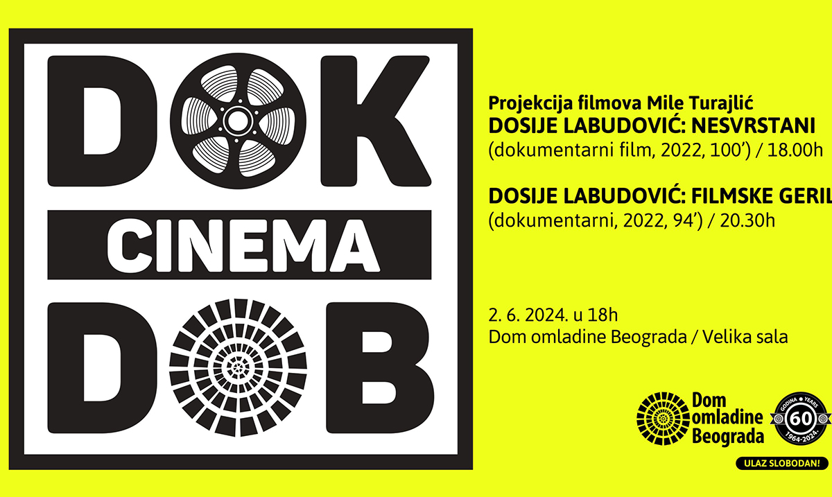 Projekcija dokumentarnih filmova „Nesvrstani“ i „Filmske gerile“ Mile Turajlić biće održana u nedelju, 2. juna od 18 (Nesvrstani) i od 20.30 časova (Filmske gerile) u Velikoj sali Doma omladine Beograda u okviru projekta „DOK CINEMA“. Gošća programa biće autorka filma sa kojom će biti održan razgovor, a ulaz na obe projekcije je slobodan.