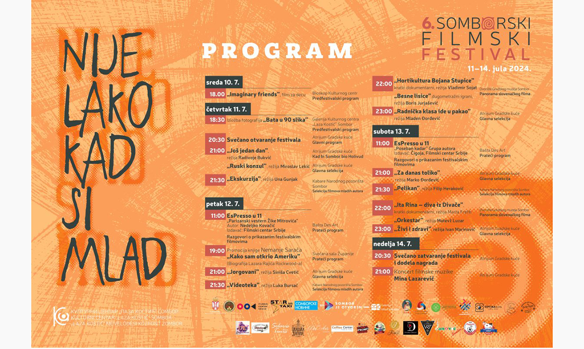 Šesti Somborski filmski festival biće održan od 11. do 14. jula u organizaciji Kulturnog centra „Laza Kostić” Sombor.