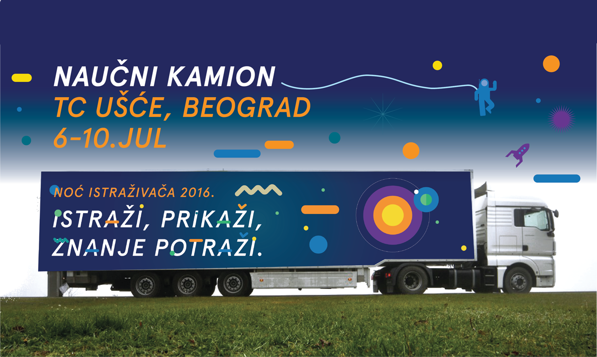 U susret sedmoj Noći istraživača u Srbiji, Naučni kamion dočekaće sve radoznale umove u Beogradu od 6. do 10. jula ispred TC Ušće u periodu od 12 do 22 časa, a sve u cilju promocije manifestacije koja će ove godine biti održana 30. septembra u sedam gradova Srbije.