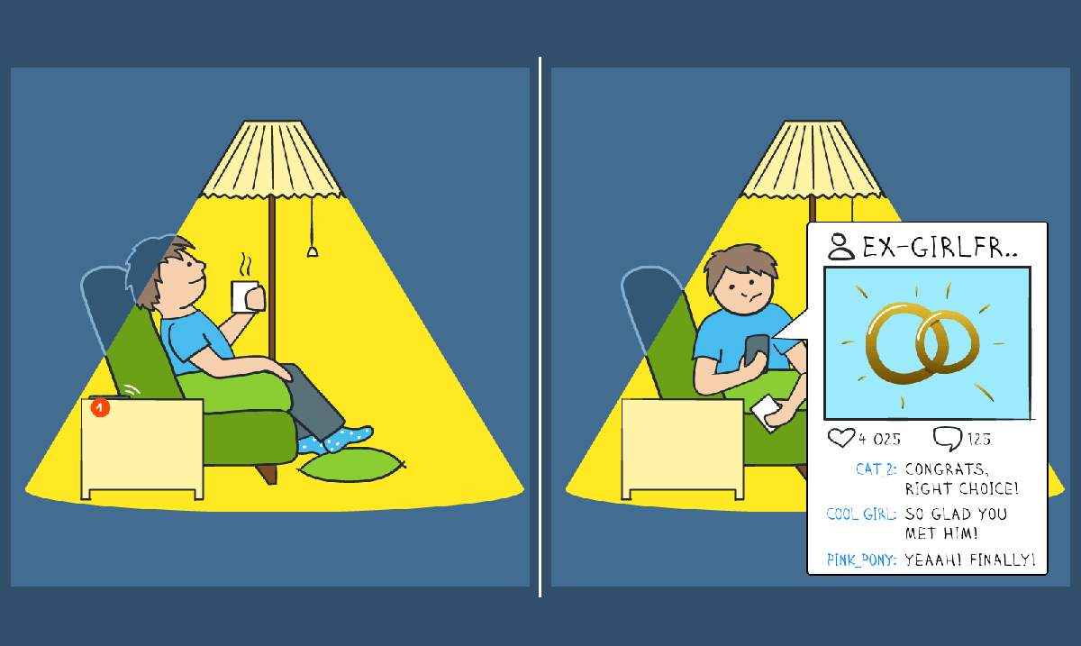 U potrazi za lajkovima, muškarci često preteruju i spremni su da idu dalje od žena, pri čemu postavljaju sadržaj koji predstavlja njih i njihove prijatelje u kompromitujećem svetlu, što se, prema Dr. Astrid Carolus, psihologu sa Univerziteta Würzburg, poklapa sa pretpostavkom da su „muškarci manje fokusirani na društvenu harmoniju i da su spremniji da rizikuju”. Tako je 15 odsto muškaraca otkrilo da bi postavili na društvene mreže fotografiju prijatelja u alkoholisanom stanju, u poređenju sa 8 odsto žena, dok bi 12 odsto muškaraca postavilo sopstvenu fotografiju na kojoj nose oskudnu odeću. Čak 9 odsto muškaraca je spremno da postavi svoju fotografiju na kojoj su potpuno nagi, dok bi to uradilo samo 5 odsto žena.