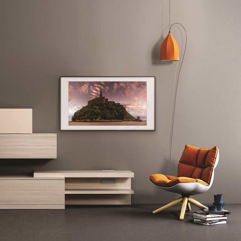 Kada se ne koristi za uživanje u TV sadržajima ili filmovima, The Frame Art Mode funkcija prikazuje digitalna umetnička dela, uključujući slike i fotografije, kako bi svakodnevni životni prostor pretvorio u galeriju. Uz to, senzor osvetljenja ovog uređaja podešava boje na ekranu, prilagođavajući ih intenzitetu svetlosti u prostoriji, čime se obezbeđuju optimalna podešavanja za prikazivanje umetničkih dela na ekranu.