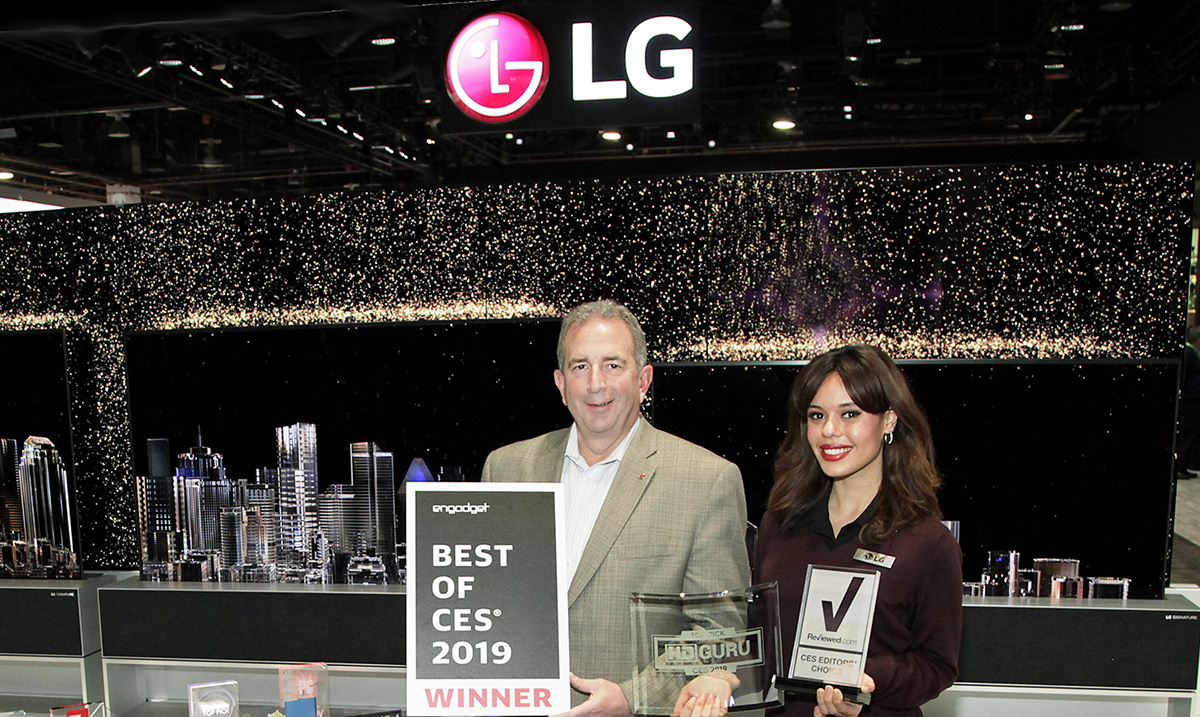 Kompanija LG Electronics (LG) osvojila je više od 140 nagrada i priznanja na sajmu potrošačke elektronike CES 2019. Među osvojenim priznanjima izdvaja se peta uzastopna „Best of CES” nagrada u kategoriji televizora koju u okviru zvaničnog programa nagrađivanja na ovom sajmu dodeljuje Engadget. Ove godine LG je ovo prestižno priznanje osvojio za revolucionarni LG SIGNATURE OLED TV R (model 65R9) – Rollable OLED TV od 65 inča. Dodatno, LG Soundbar (model SL9YG) i LG V40ThinQ smart telefon osvojili su „Best of Innovation” nagrade koje dodeljuje Asocijacija potrošačke tehnologije (CTA).