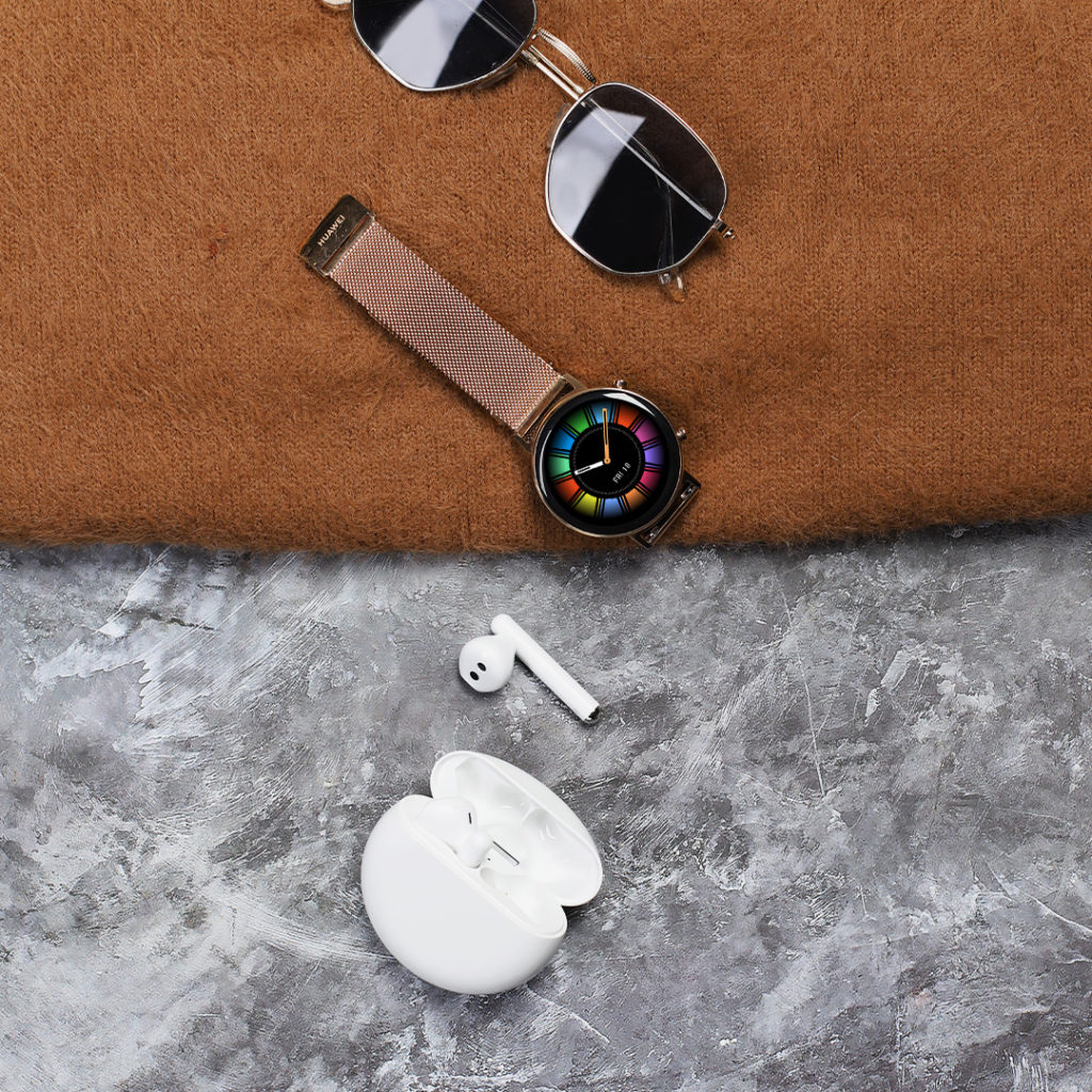 Zahvaljujući Kirin A1 čipsetu, Huawei FreeBuds 3 mogu se putem Bluetooth konekcije povezati sa vašim pametnim telefonom, ali i pametnim satom. Ukoliko povežete vaše FreeBuds 3 sa Huawei Watch GT2 pametnim satom, možete neometano slušati vaše omiljene pesme i direktno sa sata, budući da druga generacija Huawei pametnih satova poseduje posebnu memoriju za skladištenje upravo muzike.