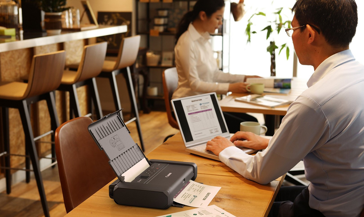 Prenosan i otporan radi štampanja u pokretu, Canon PIXMA TR150 sa baterijom pruža mobilnim zaposlenima slobodu da posao ponesu na put. Od savršenog saputnika za rad na daljinu korisnici mogu da očekuju brzo i pristupačno punjenje bilo preko AC adaptera za napajanje ili preko isporučenog USB Type-C kabla korišćenjem kompatibilnog punjača za automobil, eksterne baterije ili laptopa.
