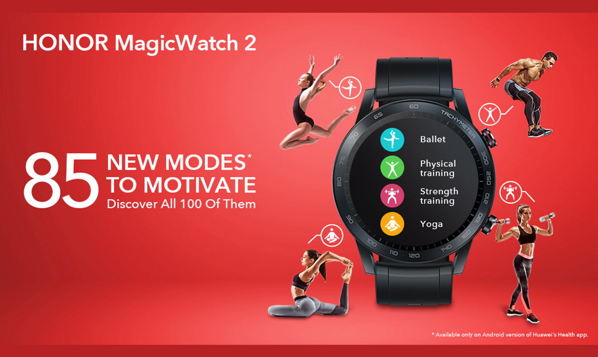 HONOR MagicWatch 2 pametni sat takođe poseduje 85 specijalno kreiranih režima za treniranje koji se mogu grupisati u šest sportskih kategorija: ekstremni, slobodno vreme, fitnes, vodeni sportovi, sportovi sa loptom i zimski sportovi. Aktivnosti su izuzetno raznolike i kreću se od uličnog plesa do parkura, a podrazumevaju i penjanje na steni, jogu, balet ili boks, čime je još jednom naglašena misija brenda HONOR da svojim korisnicima obezbedi inovativno i personalizovano iskustvo na pametnim uređajima, u skladu sa njihovim dinamičnim načinom života. I dok korisnici uživaju u svojim omiljenim sportovima i fizičkim aktivnostima, HONOR MagicWatch 2 pametni sat beleži sve relevantne podatke kao što su trajanje treninga, potrošene kalorije, otkucaji srca i drugi, omogućujući im da bolje planiraju svoje buduće aktivnosti i ostvare zapaženije rezultate, ali i da pomoću samo jednog klika podele svoje impresivne rezultate sa pratiocima i prijateljima na društvenim mrežama.