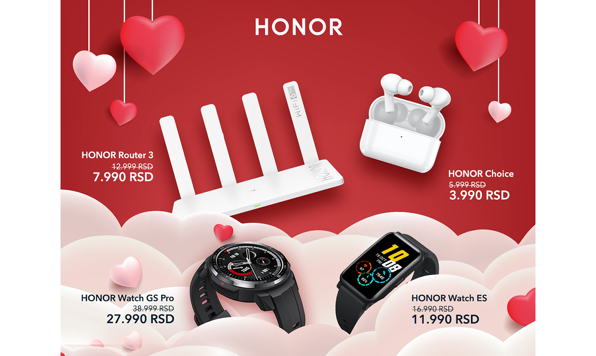 Povodom predstojećeg Dana zaljubljenih, HONOR je svojim korisnicima spremio velike popuste. Iskoristite ih i iznenadite vašu dragu osobu nekim od pametnih HONOR uređaja. Nedelja popusta traje od 8.2. do 14.2. godine u svim ovlašćenim maloprodajnim objektima.