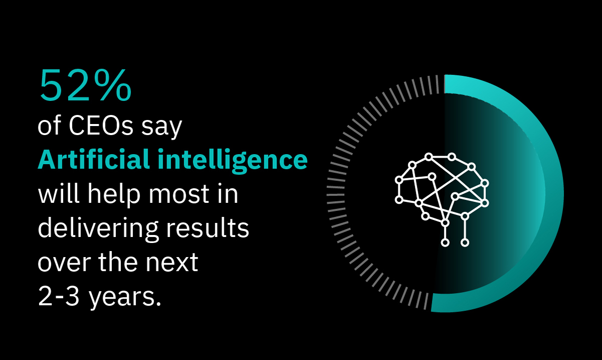 Oni najbolji iz celog sveta očekuju da će AI dati rezultate u naredne dve do tri godine, u dvostruko većem odnosu od onih koji imaju slabije rezultate. IBM-ova teza je da su ovi lideri možda daleko ispred svojih kolega u uvođenju veštačke inteligencije u dovoljnom obimu u svoje organizacije – stavljajući AI u središte inteligentnog obima posla naspram jednokratnih ili nepovezanih pilot projekata.