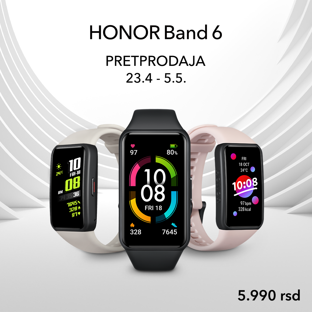 Globalni tehnološki brend HONOR predstavio je početkom aprila svoju novu pametnu narukvicu, Band 6, koja će se naći u pretprodaji od 23. aprila do 5. maja u ovlašćenim maloprodajama po specijalnoj ceni od 5.990 dinara.