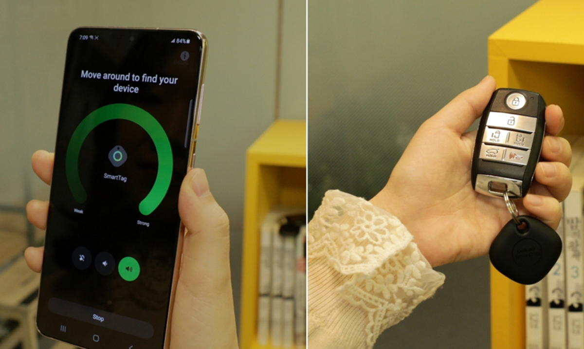 Kompanija Samsung Electronics predstavila je Galaxy SmartTag+, najnoviju verziju SmartTag uređaja, opremljenu BLE (Bluetooth Low Energy) i UWB (ultra-široki protok) tehnologijama, za pronalaženje izgubljenih predmeta sa još većom preciznošću[1]. Ovaj uređaj takođe koristi i tehnologiju augmentovane realnosti (AR), za vizuelno navođenje korisnika ka tačnoj lokaciji predmeta, pomoću kamere njihovog pametnog telefona[2]. Galaxy SmartTag+ može da se prikači na svakodnevne predmete, poput torbe i priveska za ključeve, kako bi se oni lakše locirali putem SmartThings Find servisa na Galaxy mobilnim telefonima[3].