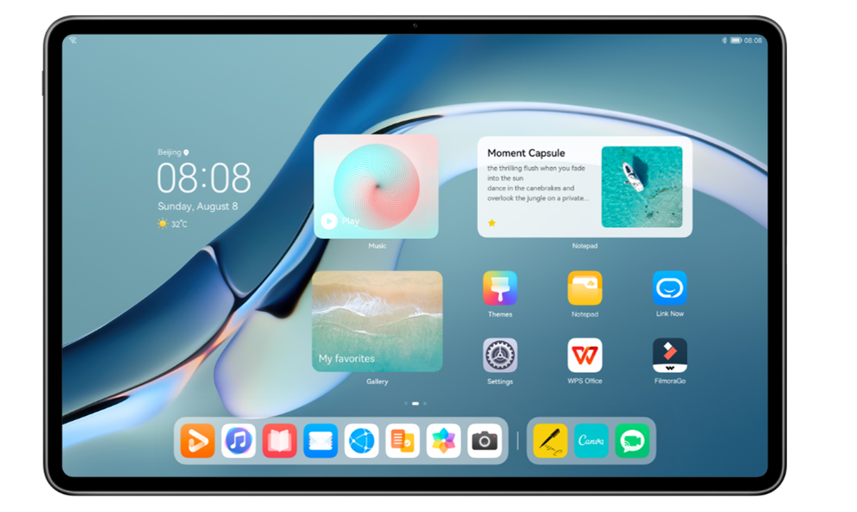 Kada pokrenete MatePad 11, prva stvar koju će većina korisnika primetiti je novi, minimalan ali dinamičan početni ekran. Na njemu se uočavaju dva područja za postavku svega što vam je potrebno: prvo u kome se nalaze red sa omiljenim aplikacijama po vašem odabiru i drugo na kome su istaknute aplikacije koje je inteligentno izabrao HarmonyOS na osnovu navika i potreba korisnika. Na taj način HarmonyOS donosi na dohvat ruke gotovo sve što vam je potrebno.