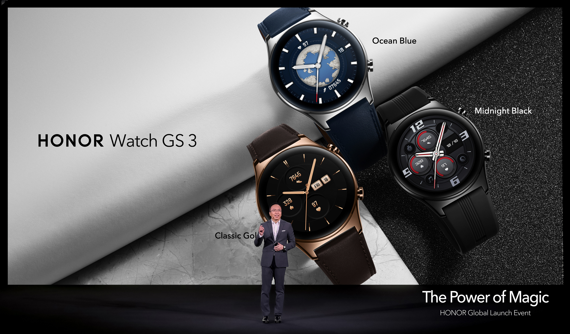 HONOR je takođe predstavio HONOR GS 3 pametni sat koji je inspirisan tradicionalnim mehaničkim satovima. Odiše elegantnim i modernim dizajnom uz upotrebu kvalitetnih materijala kao što je nerđajući čelik 316L, sat je dizajniran za udobno nošenje tokom celog dana i težak je samo 44 g.