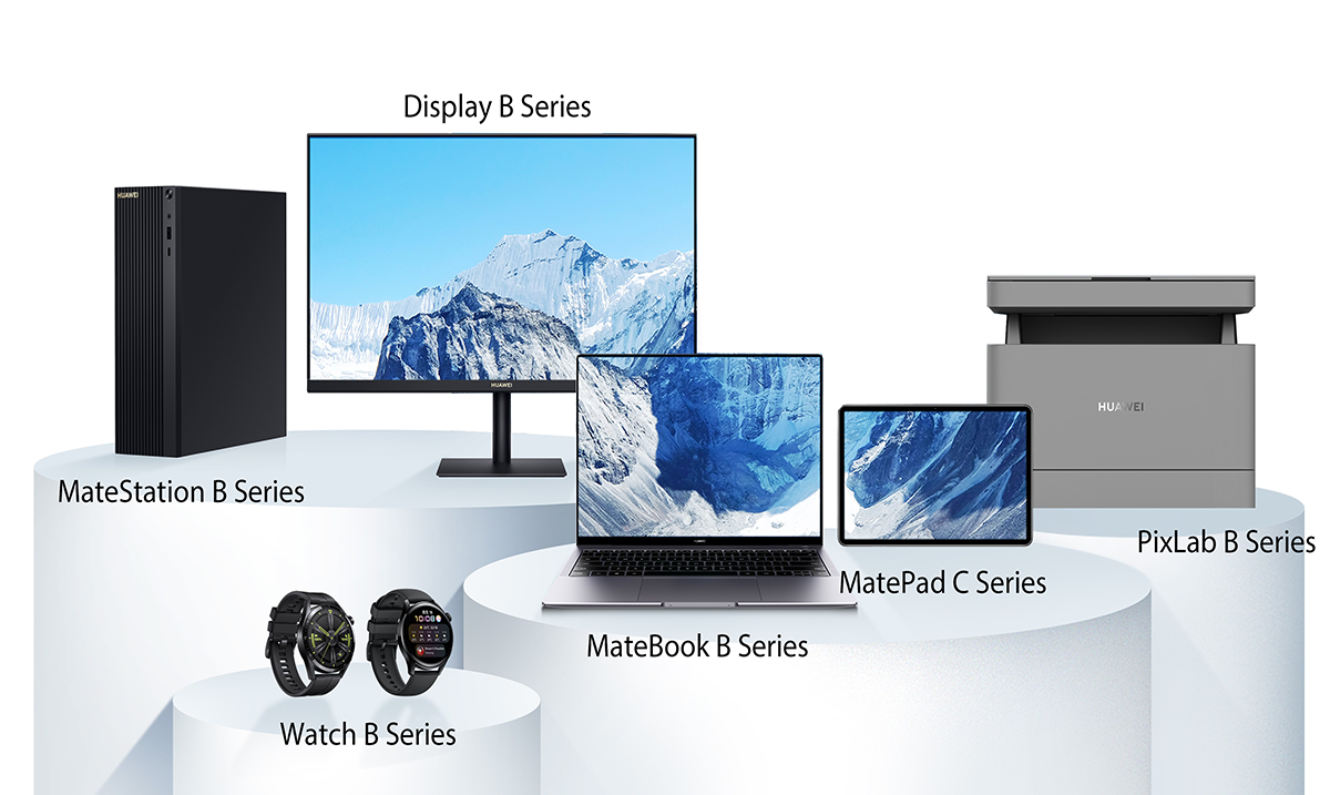Kao nova snaga na tržištu poslovne opreme, Huawei dolazi s konceptom i vizijom koji obećavaju revoluciju u industriji. Huawei veruje da poslovna oprema ulazi u eru kojom će dominirati Cloud i AI tehnologije. Ovo uključuje kompletan set poslovnih proizvoda, rešenja i servisnih platformi, uključujući MateBook B seriju za prenosive računare, MateStation B seriju za stolne računare, Display B seriju za monitore, MatePad C seriju za tablete, B seriju za štampače i B seriju za nosive uređaje.