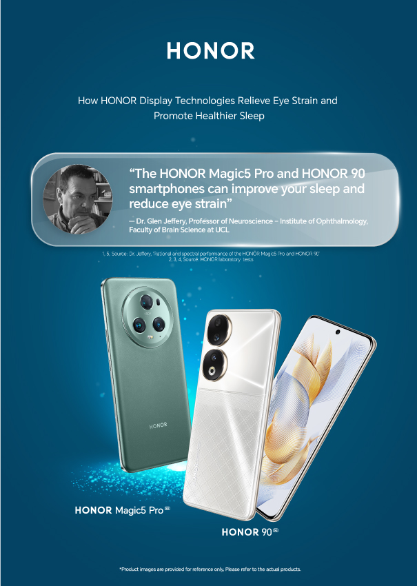 Za razliku od nekih uređaja, pametni telefoni HONOR 90 i HONOR Magic5 Pro uključuju funkcije za koje je naučno dokazano da se bore protiv ovih efekata plave svetlosti. Funkcija koju poseduju ovi uređaji – Dynamic Dimming, simulira promene u prirodnom svetlu, za koje doktor Džeferi kaže da dovode do smanjenja naprezanja očiju. Circadian Night Display funkcija prilagođava osvetljenost tako da odgovara cirkadijalnim ritmovima korisnika, za koje doktor Džeferi kaže da doprinosi zdravijem i kvalitetnijem snu.