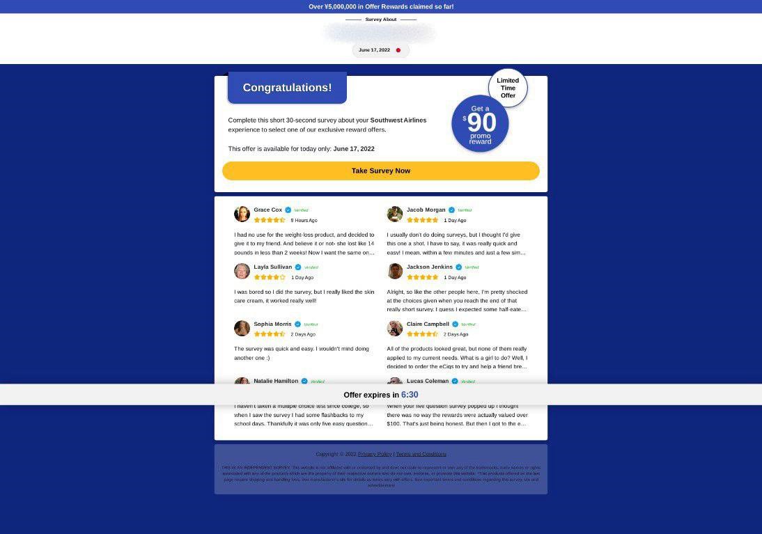 Primer lažne usluge avio-kompanije koja nudi popust za popunjavanje ankete
