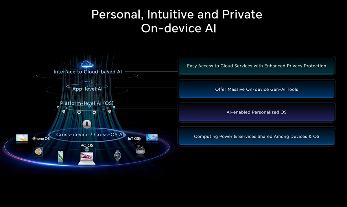 Tokom zvaničnog predstavljanja, HONOR je otkrio svoju četvoroslojnu AI arhitekturu istakavši strateški fokus na integraciji AI u MagicOS. Ova arhitektura se sastoji od različitih slojeva, pri čemu se na osnovnom sloju nalazi AI za više uređaja i operativnih sistema, što čini temelj otvorenog ekosistema omogućavajući deljenje računarske snage i usluga između različitih uređaja i operativnih sistema. Nadograđujući ovaj temelj, platformski AI sloj omogućava personalizovan operativni sistem, olakšavajući interakciju između korisnika i računara na osnovu njihovih namera i prilagođenu alokaciju resursa. Na trećem nivou, AI na nivou aplikacija donosi talas inovativnih, generativnih AI aplikacija koje će transformisati korisničko iskustvo. Na samom vrhu, interfejs sloj za Cloud-AI usluge pruža korisnicima jednostavan pristup obimnim cloud uslugama, uz istovremeno naglašavanje zaštite privatnosti, stvarajući sveobuhvatno i napredno AI iskustvo.