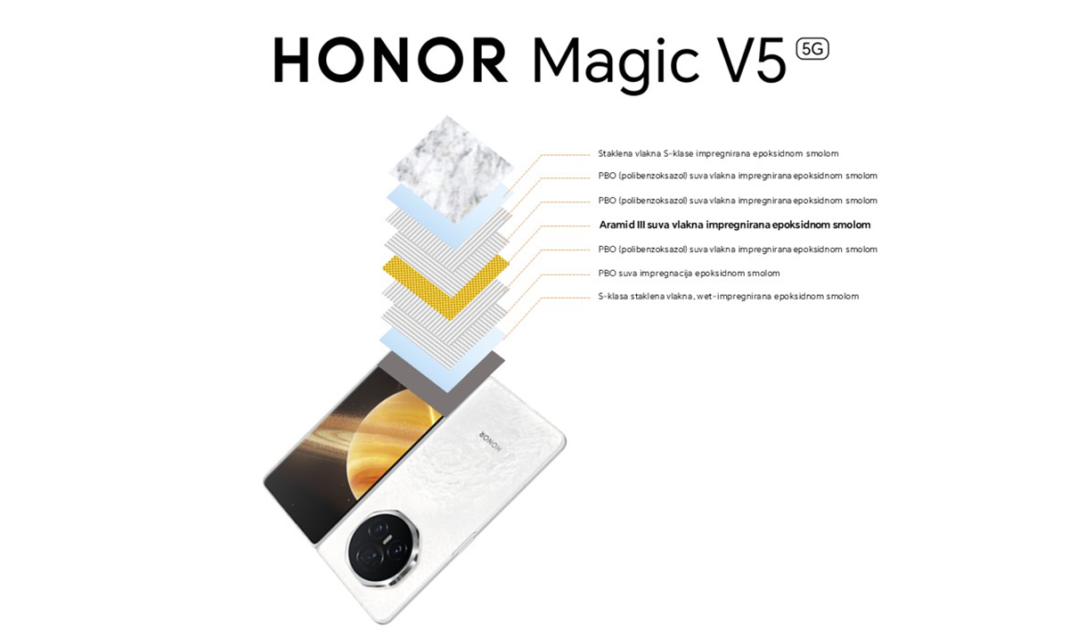Kako potražnja za ultra-tankim pametnim telefonima raste, izdržljivost ostaje jedan od glavnih prioriteta – posebno kod preklopnih uređaja. Najnoviji HONOR flagship model, HONOR Magic V5, pomera granice očekivanog nudeći neuporedivu produktivnost u izuzetno tankom i laganom formatu. Kroz spoj naprednih materijala i inovativnog inženjeringa, Magic V5 postavlja novi standard otpornosti u kategoriji preklopnih telefona.