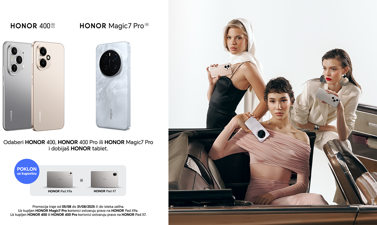 Tokom aktuelne promotivne kampanje, korisnici koji kupe HONOR Magic 7 Pro dobijaju na poklon tablet HONOR Pad X9a, dok kupci HONOR 400 Pro ili HONOR 400 modela ostvaruju pravo na tablet HONOR Pad X7.