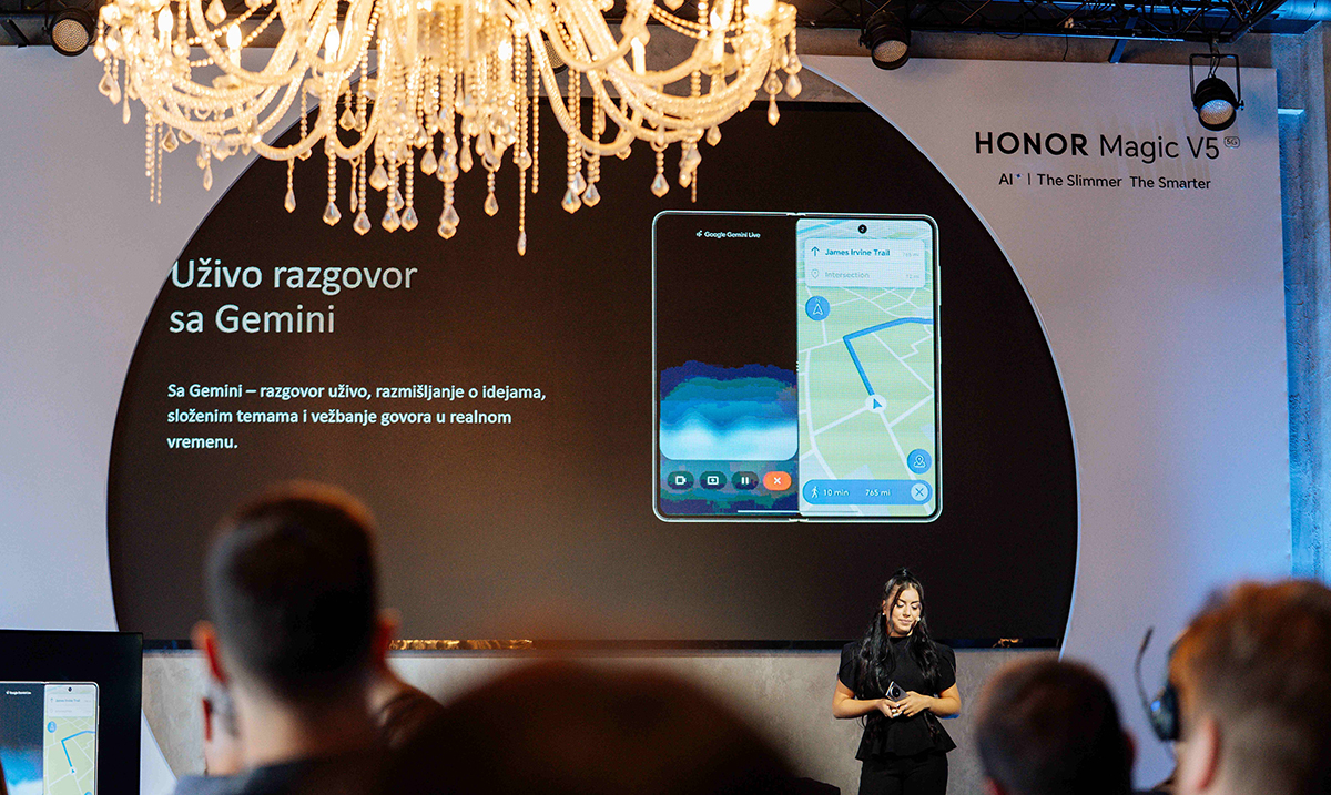 Globalni lider u oblasti AI uređaja i digitalnog ekosistema, HONOR, u sredu je na svečanom događaju predstavio HONOR Magic V5 u Srbiji – najtanji i najlaški preklopni pametni telefon do sada. Izvanredne performanse novog Magic V5 uređaja predstavljene su kroz tri nesvakidašnje demo zone koje ilustruju izuzetnu laganost, otpornost, kao i kompatibilnost sa drugim operativnim sistemima zahvaljujući HONOR Share opciji. Prodaja HONOR Magic V5 u Srbiji startuje danas, 28. avgusta, po ceni od 199.999 tokom promotivnog perioda koji će trajati narednih mesec dana. Uz promotivnu cenu, do 28. septembra sve kupce očekuju i pokloni u vidu punjača od 100W, bežičnog punjača od 100W, kao i 180 dana besplatne zamene ekrana zahvaljujući HONOR Care+ usluzi.