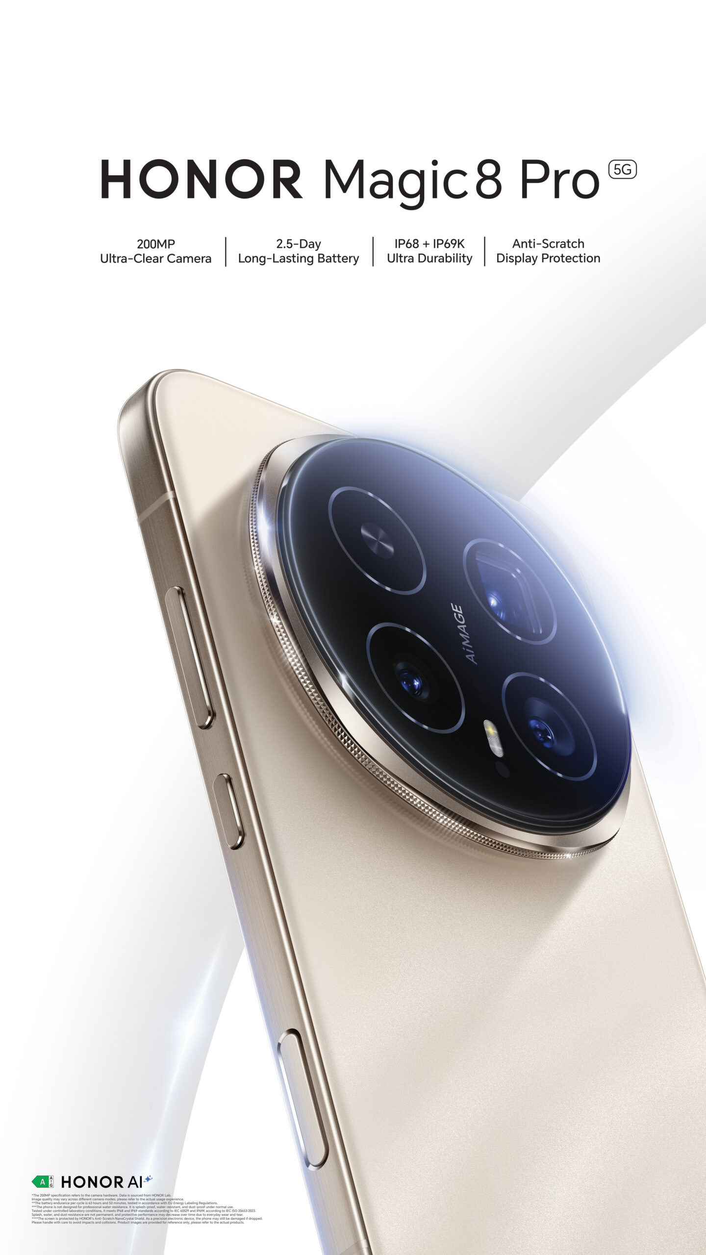 HONOR je najavio evropsku premijeru serije HONOR Magic8, koja uključuje flagship model HONOR Magic8 Pro i srednje rangirani model HONOR Magic8 Lite. Dizajnirana sa fokusom na pouzdanost, dugovečnost i svakodnevne performanse, serija HONOR Magic8 donosi vrhunske sertifikate izdržljivosti, naprednu tehnologiju baterije i moćne AI funkcije u Evropu, nudeći korisnicima neke od najpouzdanijih pametnih telefona godine.