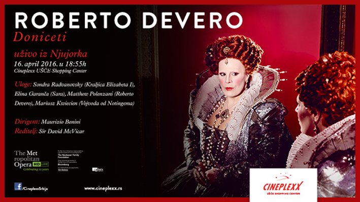 Finale četvrte sezone direktnih prenosa iz Metropolitena donosi operu „Roberto Devero“, kompozitora Gaetana Donicetija, koja će biti prikazana u subotu, 16.aprila, samo u bioskopu Cineplexx UŠĆE Shopping Center, od 19 časova.