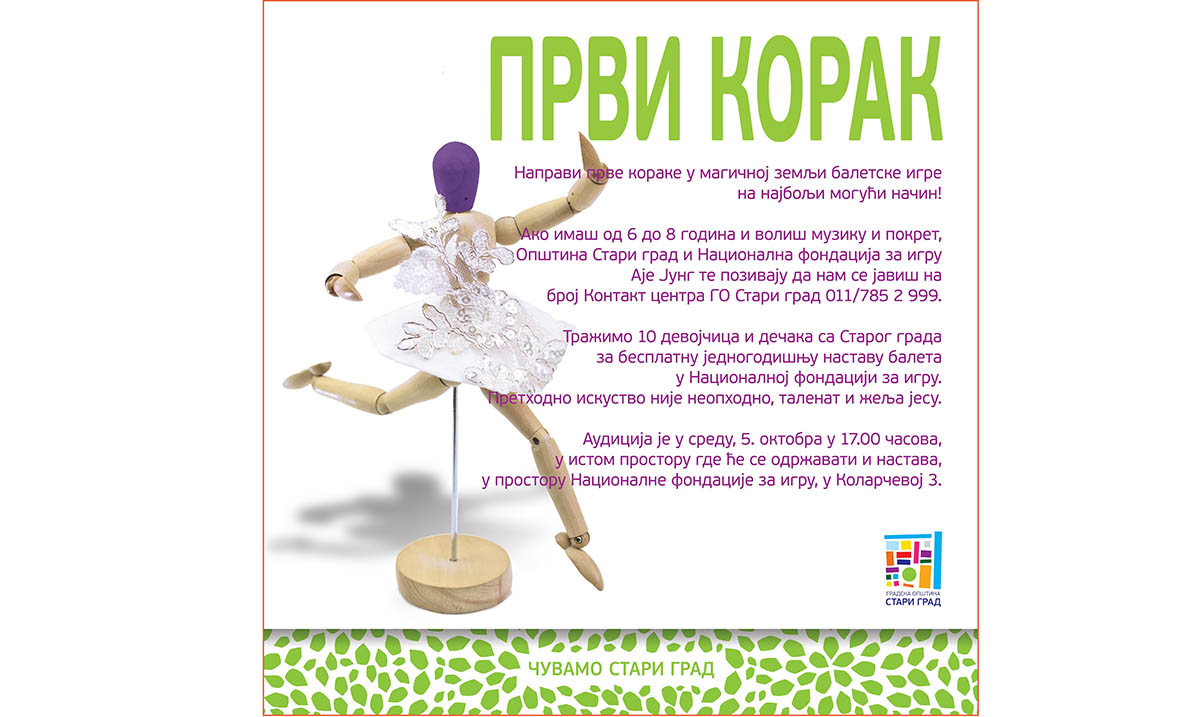 GO Stari grad u saradnji sa Nacionalnom fondacijom za igru Aje Jung omogućila je besplatnu školu baleta za decu uzrasta od 6 do 8 godina.