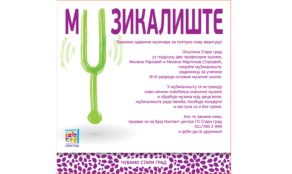 GO Stari grad, uz podršku dve profesorke muzike Milene Rajković i Milene Martinov Stojković, pokreće muZikalište, radionicu za učenike od trećeg do šestog razreda osnovne muzičke škole, gudačkog odseka.