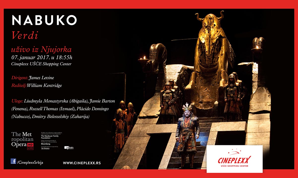 Nova godina donosi jedno od najpopularnijih Verdijevih operskih spektakala! Direktan prenos opere„Nabuko“ biće održan u subotu, 7. januara od 19 časova, samo u bioskopu Cineplexx UŠĆE Shopping Center u okviru sezone 2016/2017 iz Metropolitena.