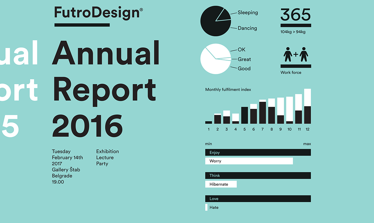 Futro Annual Report 2016. je naziv jednovečernje izložbe koja će biti otvorena u utorak 14. februara u 19 časova u Galeriji Štab, Crnogorska 10, u Beogradu.