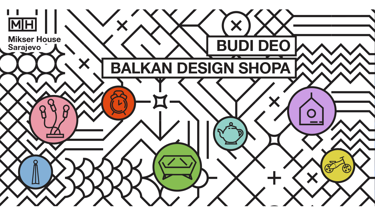 Prodavnica balkanskog dizajna u Mikser House-u u Kolodvorskoj 12 predstaviće javnosti najbolje primjere balkanske kreativnosti i preduzetništva kroz selekciju autentičnih proizvoda i rukotvorina domaćih i regionalnih dizajnera i proizvođača. Ponuda će obuhvatati originalne, savremene komade namještaja i kućne dekoracije, unikatnu odjeću, torbe, majice sa originalnim printovima, autorski nakit, urbani aksesoar, inovativni program za djecu, ekološke proizvode, lokalne gastronomske delikatese, kao i publikacije i stručnu literaturu iz domena kreativnih disciplina, djela savremene domaće i regionalne književnosti.