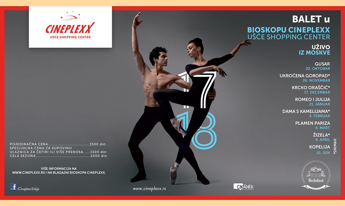 Šestu godinu zaredom posetioci bioskopa Cineplexx UŠĆE Shopping Centerimaju priliku da uživaju u izvođenjima Boljšoj baleta na velikom platnu.