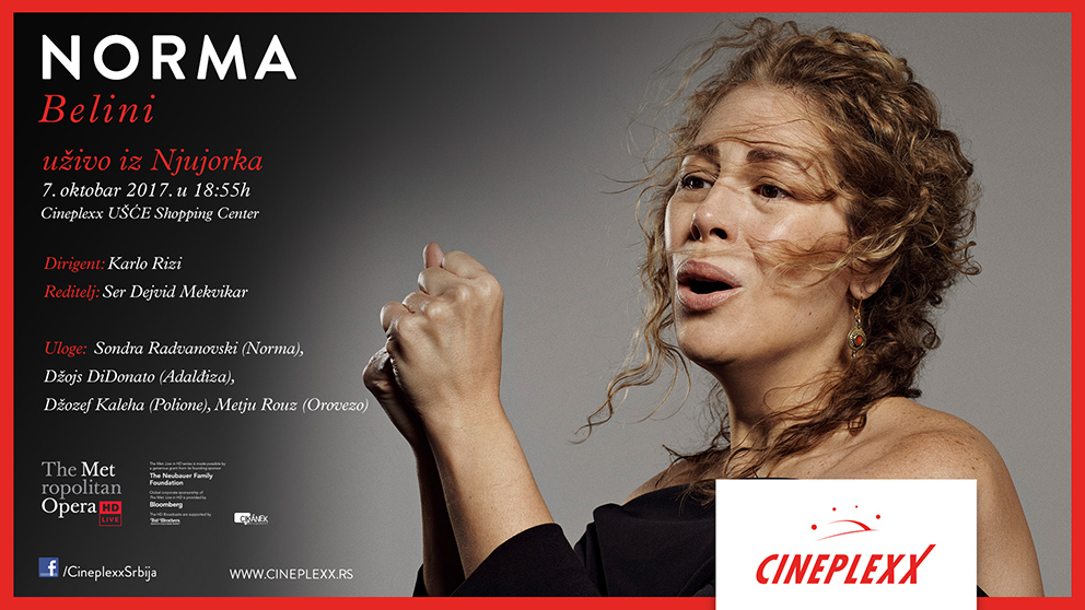 Nova sezona direktnih prenosa Metropoliten opera 2017/18 otvara se usubotu 7. oktobra od 19 časova novom produkcijom Belinijevog remek-dela „Norma“, u bioskopuCineplexx UŠĆE Shopping Center. Svi ljubitelji opere imaće jedinstvenu priliku da pogledaju izvođenje jednog od vodećih soprana na svetu, Sondru Radvanovski. Karte za jedno od najuspešnijih operskih dela sadašnjice su u prodaji na blagajni bioskopa.