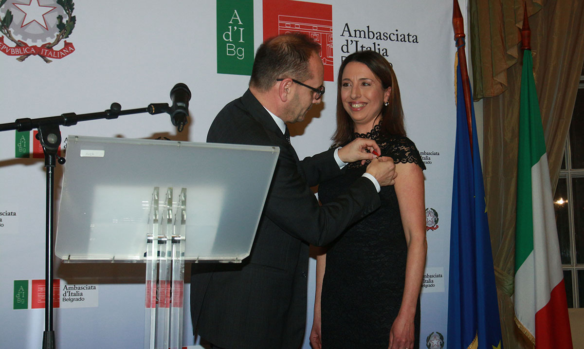 U prisustvu predsednice Vlade Ane Brnabić, brojnih diplomatskih predstavnika, kao i predstavnika medija, kulture i biznisa, Aja Jung se na italijanskom jeziku zahvalila na ovom važnom priznanju koje dolazi iz zemlje kulture.
