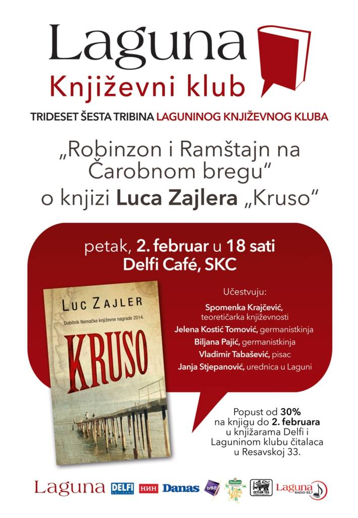 Trideset šesta tribina Laguninog književnog kluba biće posvećena dobitniku Nemačke književne nagrade 2014, romanu „Kruso“ Luca Zajlera.