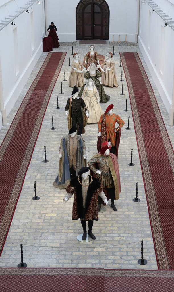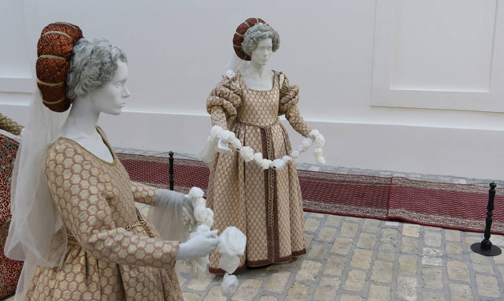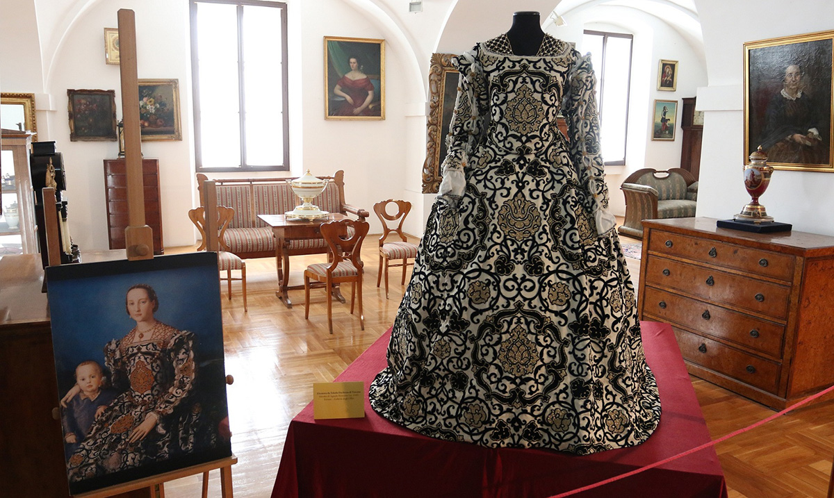 Jedinstveni po lepoti i skupocenosti, izloženi kostimi su prava remek-dela italijanskih krojačkih i zanatskih kuća. Predstavljeni su brojni svečani kostimi rekonstruisani zahvaljujući proučavanju renesansnih slika. Ovi kostimi izloženi su na postoljima a pored njih nalaze se fotografije renesansnih slika koje su poslužile kao inspiracija. Izložbu zaokružuje “Vladareva gozba”, scena koja dočarava salu renesansne palate dekorisane kao za doček gostiju na gozbi. Impozantna tkanina, trpeza na kojoj su postavljeni keramika i ukrasni predmeti i polica sa dekorativnim tanjirima glavni su elementi ovog dela izložbe, koja omogućuje posetiocu da se približi drugom važnom aspektu italijanske kulture u prošlosti – enogastronomiji.