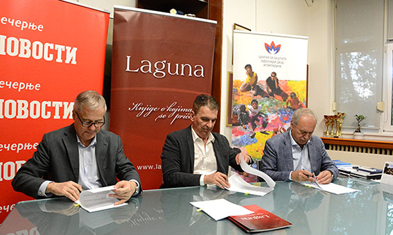 U prostorijama Centra za zaštitu odojčadi, dece i omladine u Zvečanskoj u četvrtak 24. maja organizatori i medijski pokrovitelji – Zoran Milačić, direktor Centra, Dejan Papić, direktor Lagune, i Milorad Vučelić, glavni i odgovorni urednik Novosti – svečano su potpisali ugovor o poslovnoj saradnji u realizaciji akcije „Čitajmo deci“.