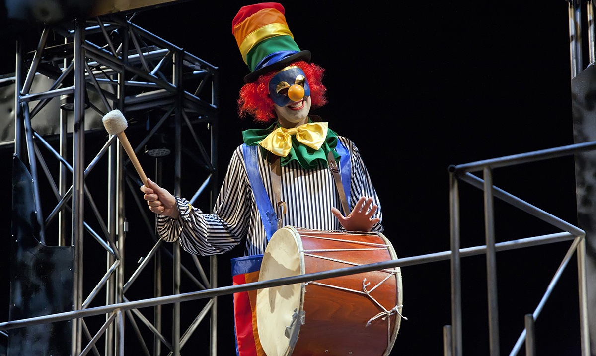 Modernu, erotizovanu, dramatičnu, uzbudljivu i likovno raskošnu inscenaciju uradio je stari poznanik Madlenianuma, gost reditelj iz Sankt Peterburga Jurij Aleksandrov koji je u Madlenianumu već postavio modernizovanu verziju Verdijeve Travijate, a imali smo prilike da gledamo i njegove postavke opera Ne samo ljubav Ščedrina i Veridba u manastiru Prokofjeva, kada je pre dve sezone gostovala Opera Sankt Peterburga u našoj Kući. U eksplikaciji svoje režije Jurij Aleksandrov kaže: “Rukovodim se, pre svega, svojim odnosom prema teatru, kome sam posvetio život. Teatru koji je predmet mržnje i predmet obožavanja, koji je ciničan i ranjiv, koji ugnjetava i koji oslobađa, teatru robova i bogova! Teatru umetnika i pajaca! Može da se nabraja u nedogled. U predstavi Pajaci sadržana su moja razmišljanja o teatru iznutra, o teatru koga publika ne poznaje. To je na neki način proizvod moje borbe, mojih razočaranja i ushićenja, pobeda i poraza…Jedna od tema ove predstave su odnosi između teatra i publike, a još preciznije rečeno – odnosi s onima koji stoje između teatra i publike.”