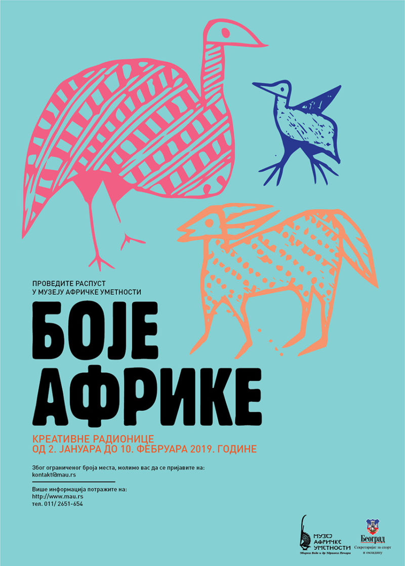 Muzej afričke umetnosti, uz podršku Sekretarijata za sport i omladinu, tokom zimskog raspusta organizuje besplatan program za srednjoškolce pod nazivom „Boje Afrike– kreativne radionice i izložba radova”.