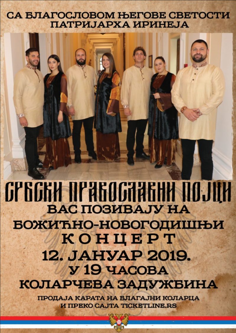 Božićni koncert Srpskih pravoslavnih pojaca biće održan 12. januara na sceni beogradskog Kolarca.