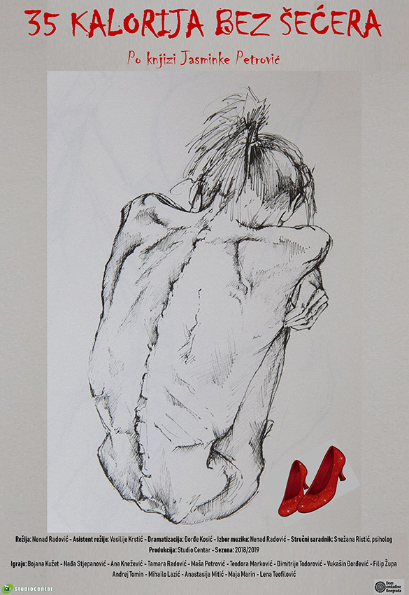Pozorišna predstava „35 kalorija bez šećera“ o problemima ishrane i anoreksije među mladima, rađena po istoimenoj knjizi naše najčitanije spisateljice za mlade Jasminke Petrović, biće premijerno izvedena u sai Amerikana Doma omladine Beograda 22. i 23. januara 2019. godine, sa početkom u 20 časova.